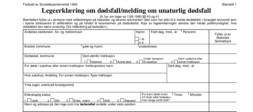 Slik skal dødsmeldingen fylles ut