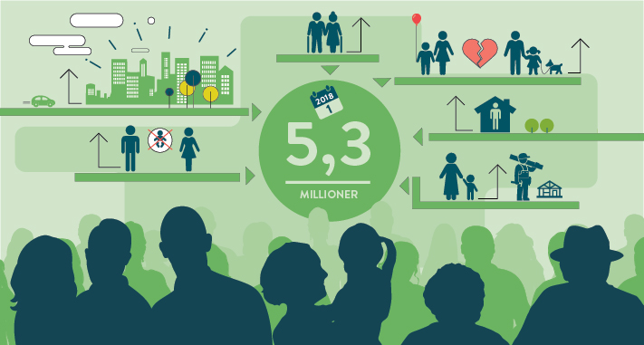 |Det blir stadig flere eldre og innvandrere i den norske befolkningen. Fruktbarheten har falt, og det har vært store endringer i hvilke typer husholdninger vi bor i de siste tiårene.