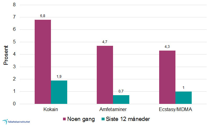 Kokain-, amfetamin- og ecstasybruk i befolkninga