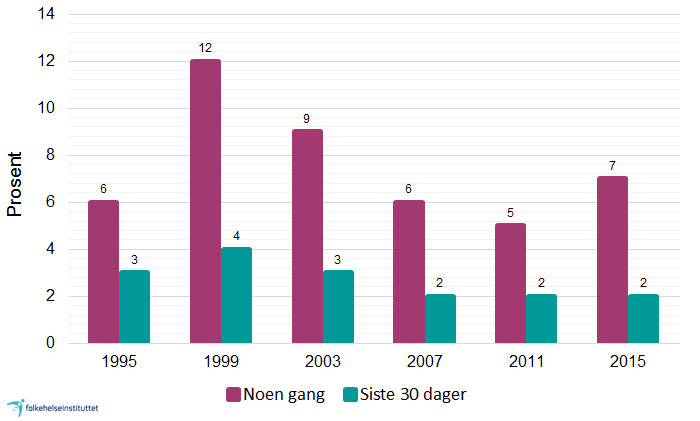 - Bruken av ulovlege rusmiddel er meir omfattande beskriven i rapporten Narkotika i Norge.