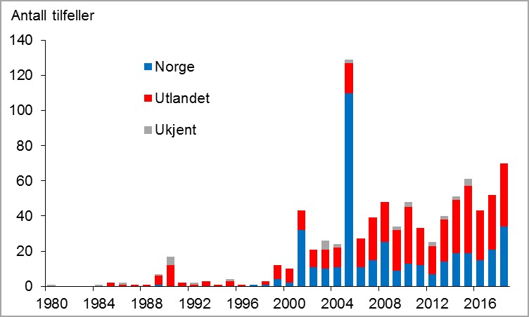 Legionellose har vært nominativt meldingspliktig til MSIS siden 1980.