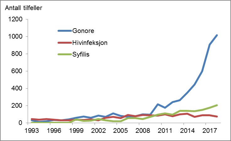 Det har siden 2010 vært en sterk økning i meldte tilfeller av gonorè blant msm i Norge. Noe av forklaringen skyldes økt testaktivitet, inkludert rutinemessig ekstragenital (hals og anus) prøvetaking, samt innføring av mer sensitiv diagnostikk. De fleste er smittet i Norge. Mange er innvandrere bosatt i Norge. Se Gonoré - håndbok for helsepersonell.