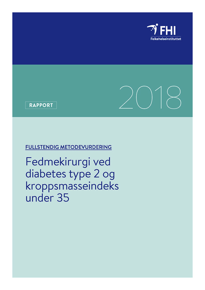 Området for helsetjenester i Folkehelseinstituttet har utarbeidet en fullstendig metodevurdering om effekt og sikkerhet av fedmekirurgi for personer med diabetes type 2 og en kroppsmasseindeks (KMI) under 35. Rapporten inneholder også en helseøkonomisk evaluering knyttet til bruk av fedmekirurgi sammenliknet med ikke-kirurgisk behandling. Metodevurderingen er ment å inngå som beslutningsgrunnlag for de regionale helseforetakene i Beslutningsforum for Nye metoder.