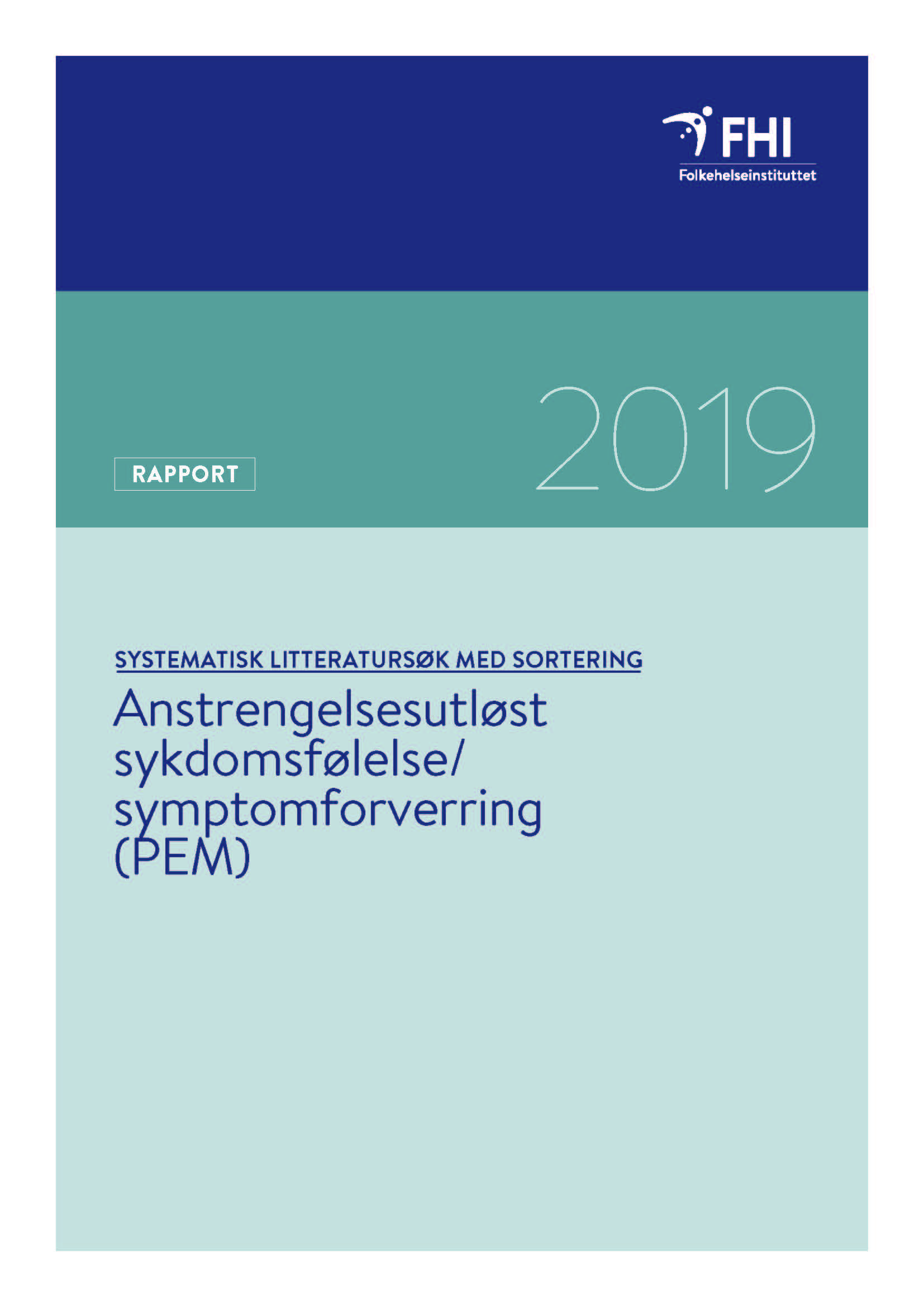 Folkehelseinstituttet, område for helsetjenester (daværende Nasjonalt kunnskapssenter for helsetjenesten) fikk høsten 2015 i oppdrag av Norges ME-forening å kartlegge forskning på anstrengelsesutløst sykdomsfølelse/symptomforverring (Post-Exertional Malaise, PEM) ved kronisk utmattelsessyndrom CFS/ME. Vi har utført et systematisk litteratursøk, gjennomgått referansene fra søket og sortert relevante referanser i ulike kategorier.