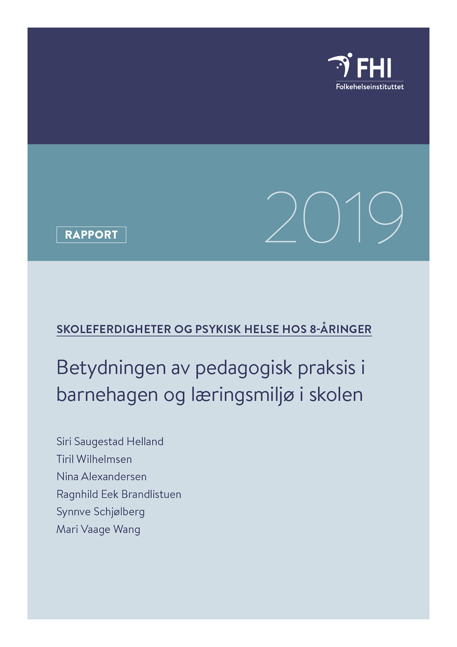 Rapporten undersøker hvilke faktorer i barnehage- og skolemiljø som henger sammen med barns psykiske helse og skoleferdigheter når de er 8 år. Den undersøker også hvilke faktorer i barnehage og skole som henger sammen med at barna får spesialpedagogisk hjelp og spesialundervisning i barnehage og skole.