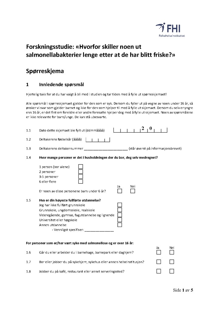 Spørreskjema i salmonella bærerskap-studien (MoMir).
