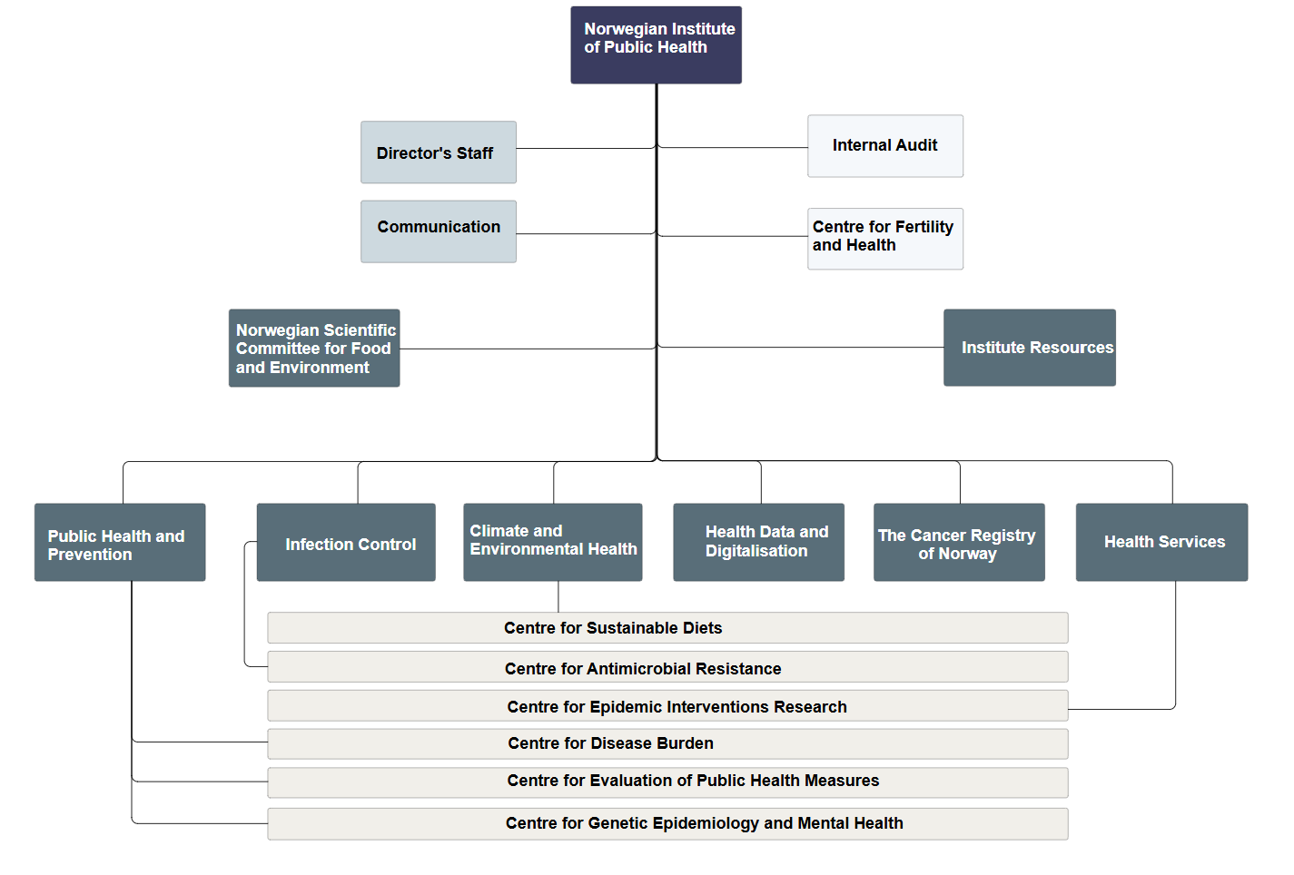 Overview of the Norwegian Institute of Public Health's divisions and departments.