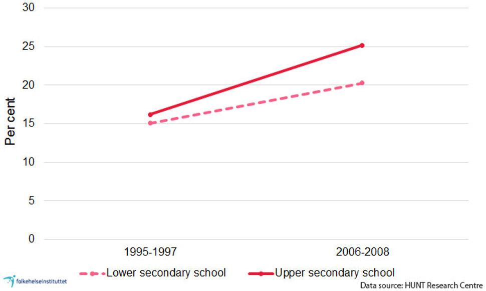 Among 15-year-olds, we also see similar differences between children with parents with lower and higher education (Norwegian Directorate of Health, 2012).