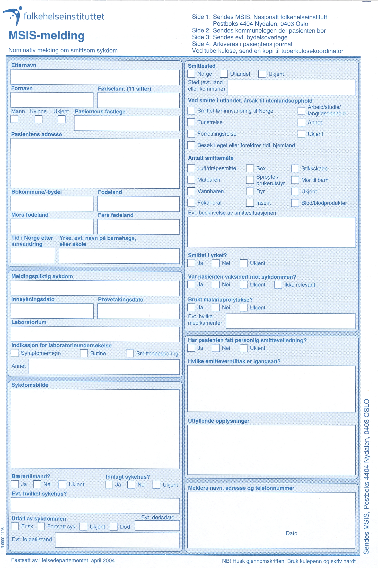 Notification of infectious diseases to MSIS is an important part in the surveillance of infectious diseases in Norway.