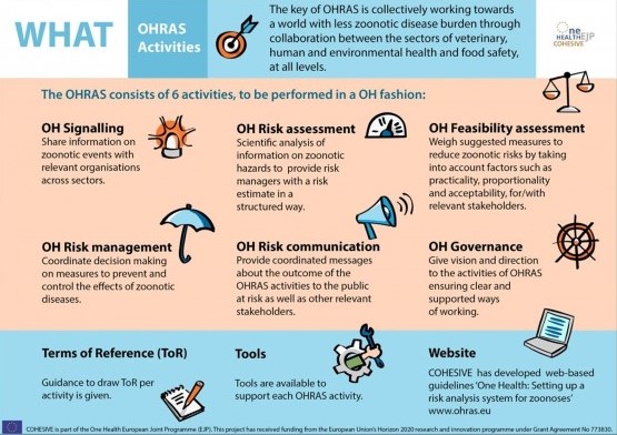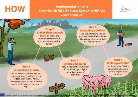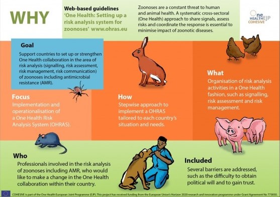 In the COHESIVE project, the Norwegian Institute of Public Health has contributed to development of a website with guidelines for setting up a One Health Risk Analysis System (OHRAS) for signalling, assessing, and controlling zoonoses in European countries.