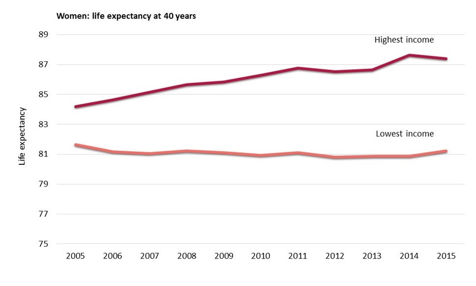 In the period 2005-2015, the life expectancy gap between the richest 25 per cent and the poorest 25 per cent increased (see figure 2):