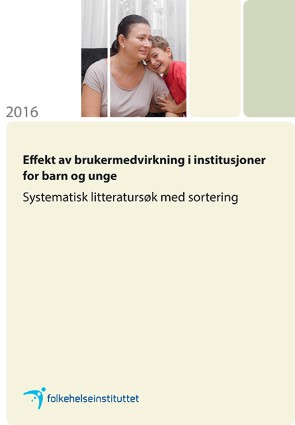 The Norwegian Knowledge Centre was commissioned by the Norwegian Directorate for Children, Youth and Family Affairs to conduct a systematic literature search with a subsequent categorization of relevant research. The commission was to identify research on the effectiveness of user involvement in institutions for children and youth.