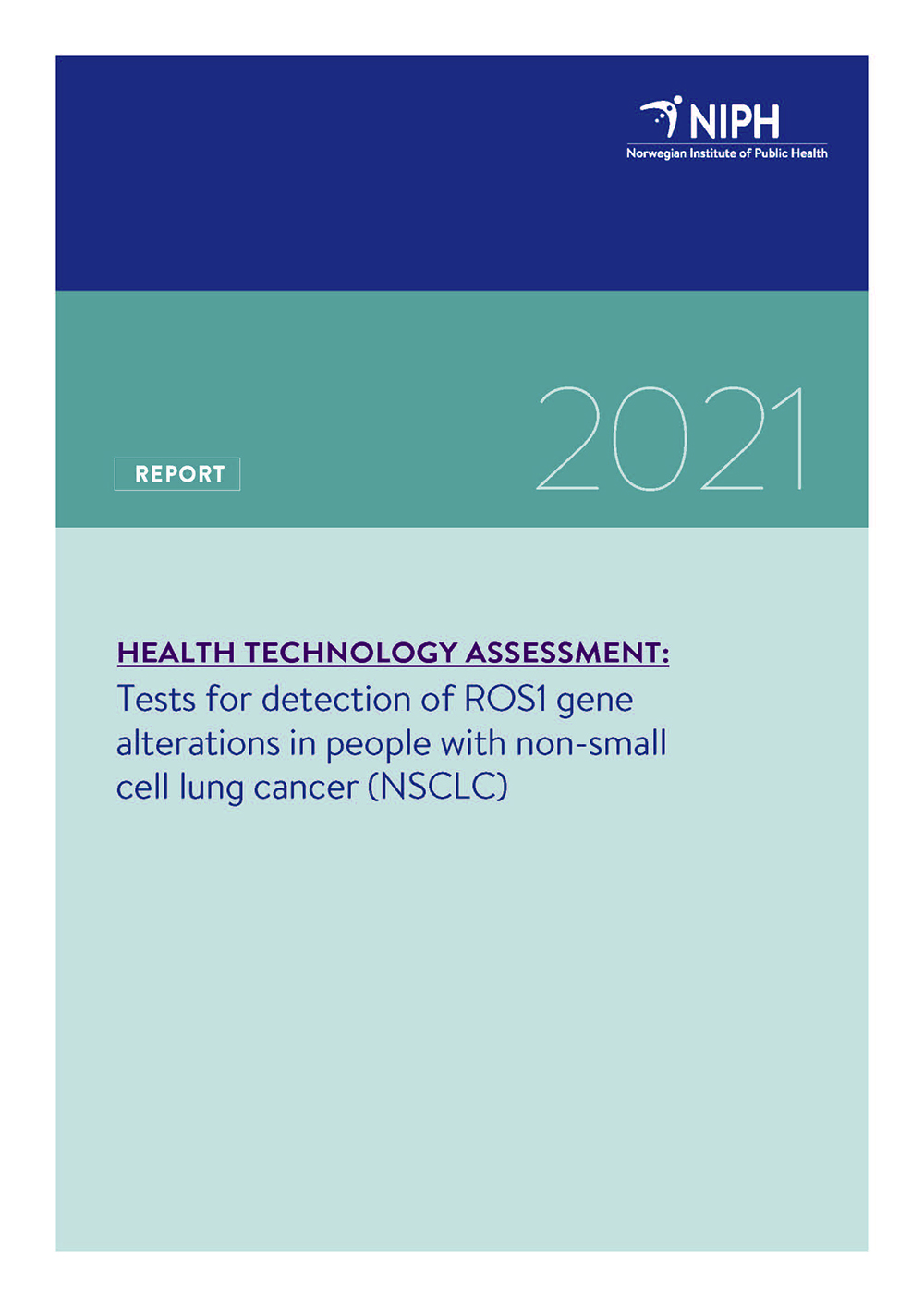 The Norwegian Institute of Public Health has been commissioned to evaluate molecular tests for the identification of somatic ROS1 gene alterations in people with locally advanced or metastatic non-small cell lung cancer (NSCLC). People with tumours harbouring ROS1 gene alterations probably make up 1-2% of NSCLC cases. Accurate and reliable detection of ROS1 gene alterations is important for identification of people who may benefit from treatment, as well as ROS1 negative patients, to avoid provision of unnecessary and costly treatment.
