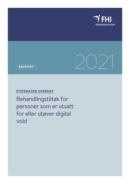 In 2019, NIPH published an evidence and gap map of systematic reviews on treatment alternatives for violence and sexual abuse. The authors identified, among other findings, that therapies for cyber violence were understudied. Whether therapies for traditional violence may be effective in treating cyber violence is poorly understood.