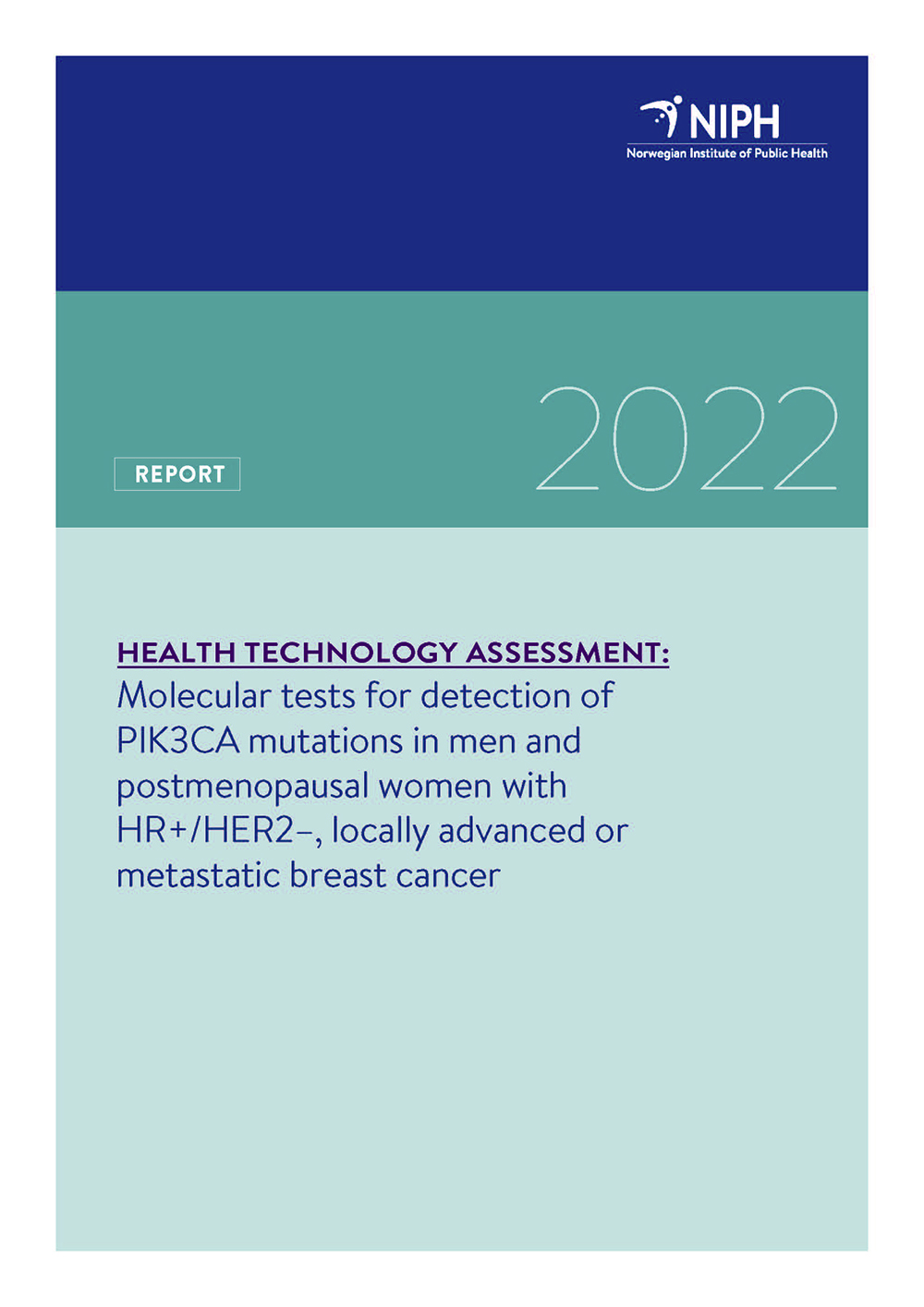 The Norwegian Institute of Public Health was commissioned to evaluate molecular tests for the identification of somatic PIK3CA mutations in men and postmenopausal women with HR+/HER2–, advanced or metastatic breast cancer (BC).