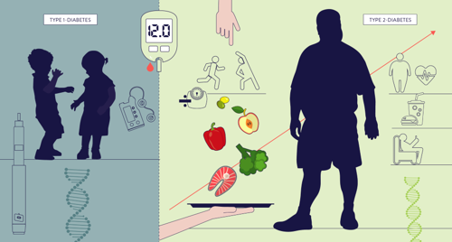 Diabetes er karakterisert ved for høye nivåer av glukose i blodet (høyt blodsukker). Type 1-diabetes skyldes mangel på insulin, og behandles med insulininjeksjoner. Type 2- diabetes skyldes at insulin har dårligere virkning kombinert med redusert evne til å skille ut insulin. Type 2-diabetes behandles med kost og mosjon, blodsukkersenkende tabletter og eventuelt insulin.
