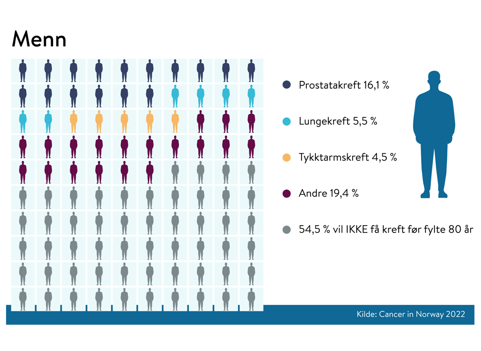 - Med dagens kreftbilde vil om lag 45 prosent av norske menn, og 38 prosent av norske kvinner få en kreftdiagnose innen de fyller 80 år.