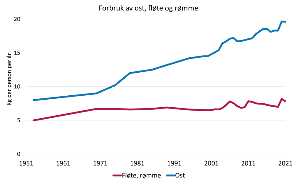 Helsedirektoratet gir årlig ut en rapport om utviklingen i norsk kosthold, som er basert på tall for landets matforsyning (engrosforbruk), samt data fra forbruks-, kostholds- og intervjuundersøkelser (Helsedirektoratet, 2022).