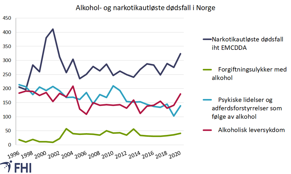 I gjennomsnitt er det rundt 250-300 narkotikautløste dødsfall årlig (Narkotika i Norge). Siden 2010 har det vært en nedgang i antall dødsfall som følge av heroin, men en økning i antall dødsfall som følge av andre opioider. Andre opioider er en samlekategori med flere forskrevne og illegalt ervervede opioider, og har tatt over som viktigste årsak til overdosedød. De som dør av andre opioider har andre karakteristika enn de som dør av heroin (Gjersing & Amundsen, upubliserte data). De som dør av andre opioider enn heroin er oftere kvinner, fra 50 år eller eldre, mottar uførepensjon og har en noe bedre sosioøkonomisk situasjon enn de som dør etter bruk av heroin. Dødsfall etter overdoser med heroin er hyppigere i det offentlige rom, og skjer oftere i større byer. De som dør av heroinoverdose har også i større grad tilknytning til kriminalitet og mange er faktisk også i aktiv rusbehandling. Personer som døde av overdose i gruppen «andre opioider» var oftere diagnostisert med ryggproblemer og hadde opplevd ulykker og skader. De kan ha fått forskrevet opioider som smertebehandling. Dødsfall etter bruk av heroin var forbundet med å ha en rusmiddeldiagnose.