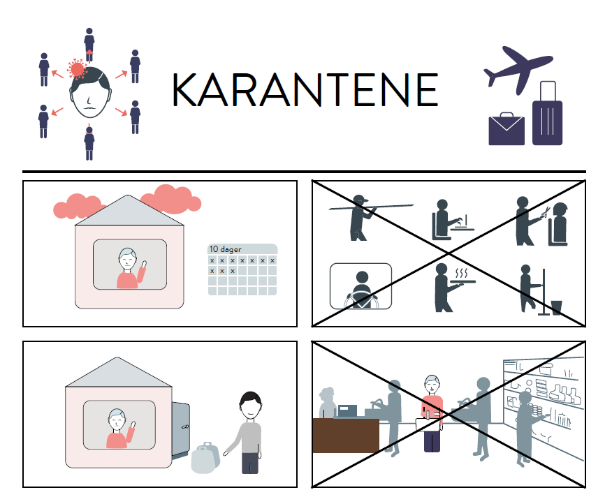 Vi har laget en forenklet visuell utgave av reglene for isolasjon og karantene.