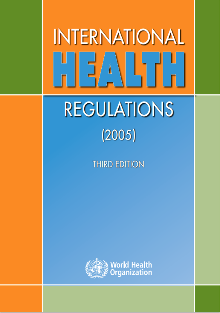WHO vedtok i 2005 et nytt internasjonalt helsereglement, på engelsk International Health Regulations (IHR). Formålet er å forebygge og motvirke internasjonal spredning av smittsomme sykdommer og å sikre en internasjonal koordinert oppfølging, men samtidig unngå unødvendige forstyrrelser av internasjonal handel og reising. IHR (2005) erstattet den tidligere versjonen fra 1969.
