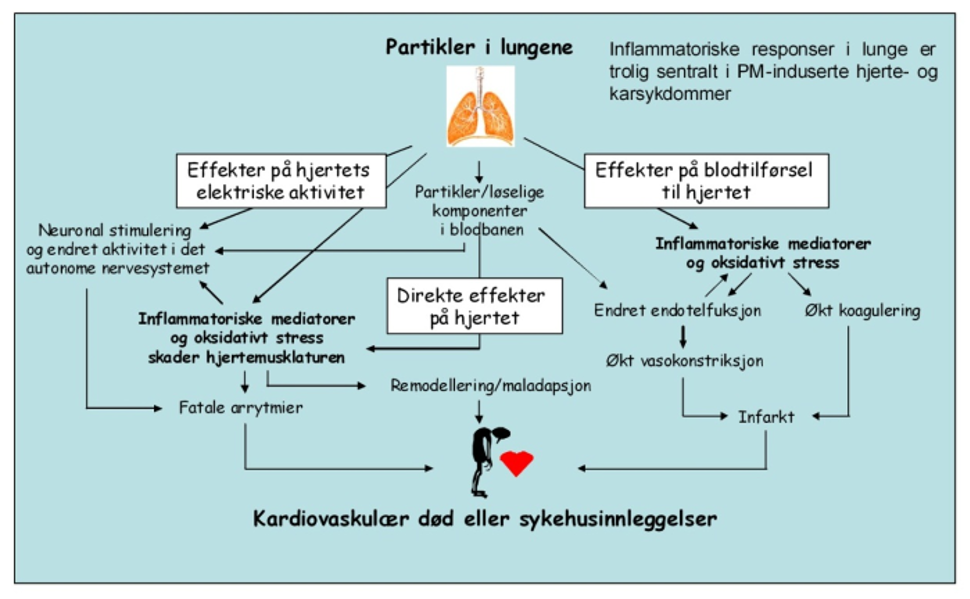 - Utvikling av luftveissykdommer og hjerte- og karsykdommer (bl.a. ved å utløse betennelsesreaksjoner)