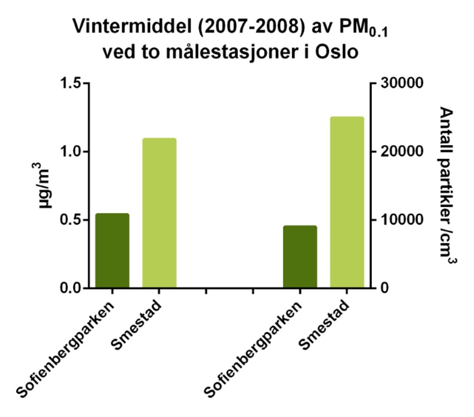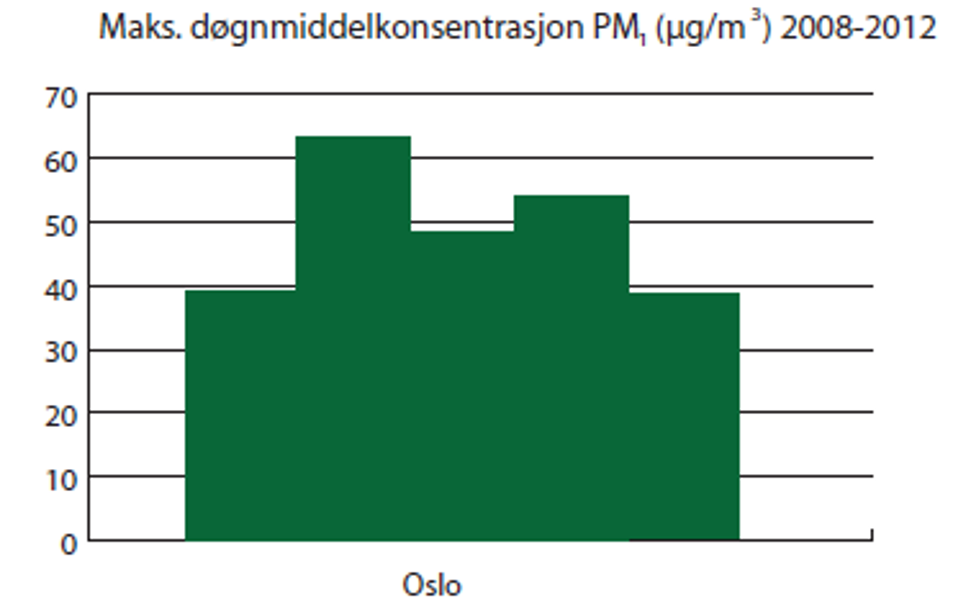 Samlet sett fastsetter Folkehelseinstituttet og Miljødirektoratet et luftkvalitetskriterium for døgnmidlet PM10 på 30 µg/m3, som er en videreføring av det nivået vi har fra tidligere, og strengere enn den nye anbefalingen fra WHO. For PM2,5 er døgnnivået fastsatt til 15 µg/m3, som er en videreføring av det nivået vi hadde fra tidligere og som også samsvarer med de nye anbefalingene fra WHO.