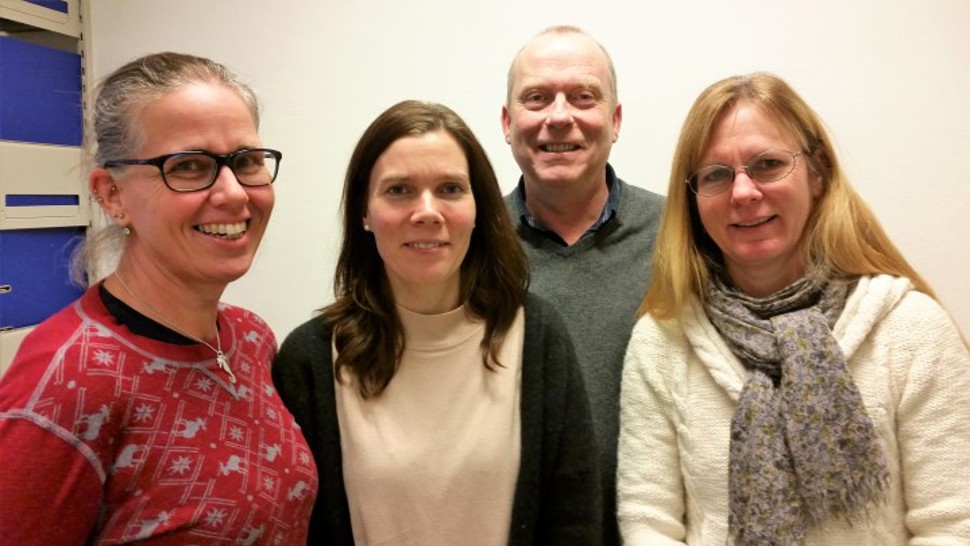 Prosjektgruppen ved Folkehelseinstituttet består av (fra venstre): Hege Hjertholm (studiekoordinator), Monica Andreassen (post doktor), Hubert Dirven (prosjekteier), Trine Husøy (prosjektleder).