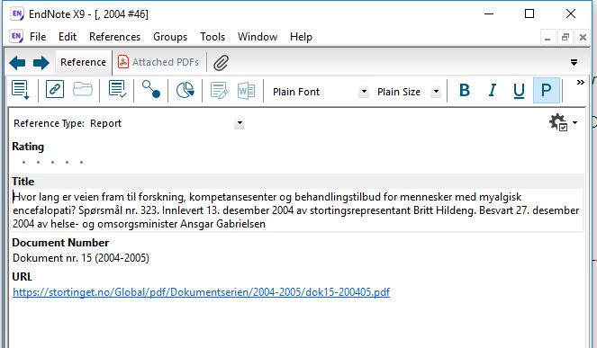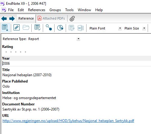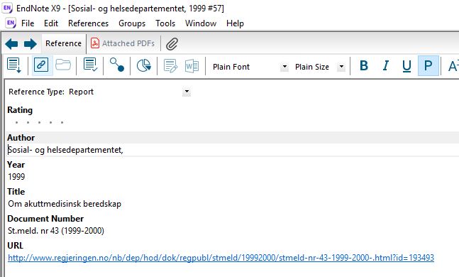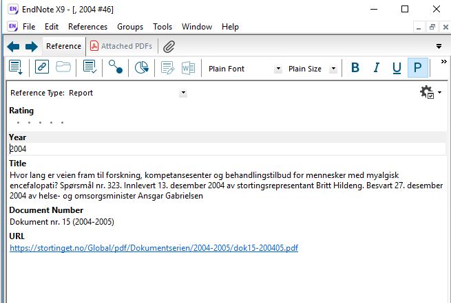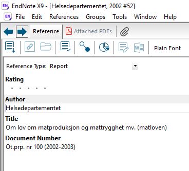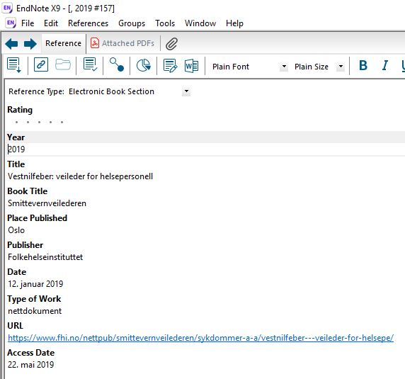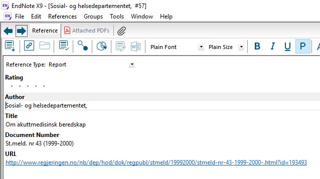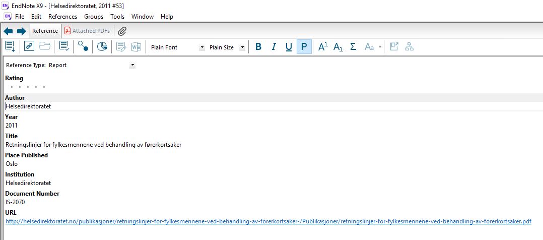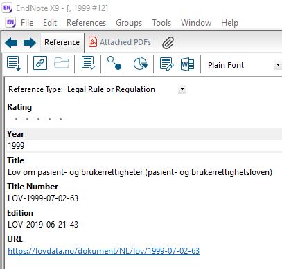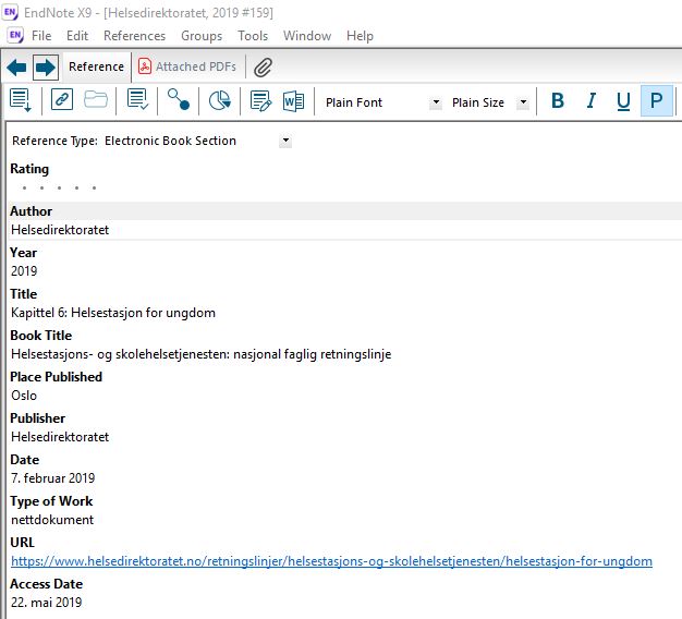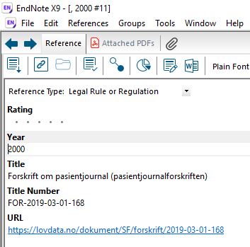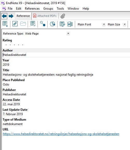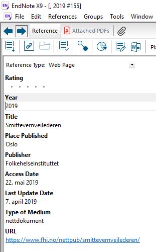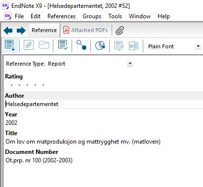 Det fins også eget dokument med generelle råd om hvordan registrere referanser i EndNote og hvilke opplysninger som skal være med, som fungerer som et supplement til denne eksempelsamlingen.