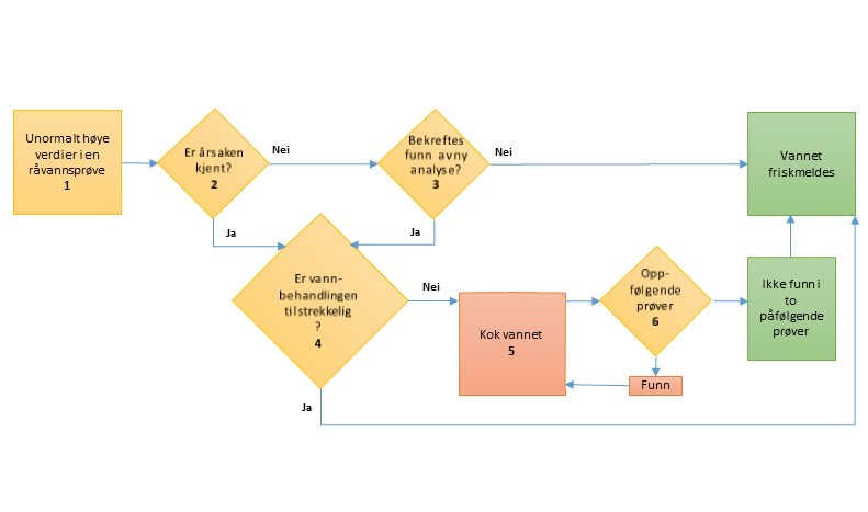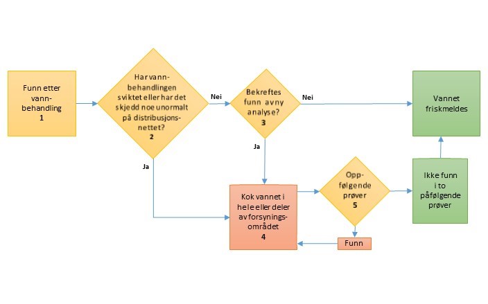 - Eventuelle feil med vannbehandlingen og/eller desinfeksjonen er rettet opp.