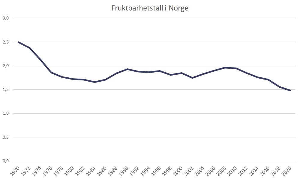 - Les også FHI-rapporten Fallende fruktbarhet i Norge