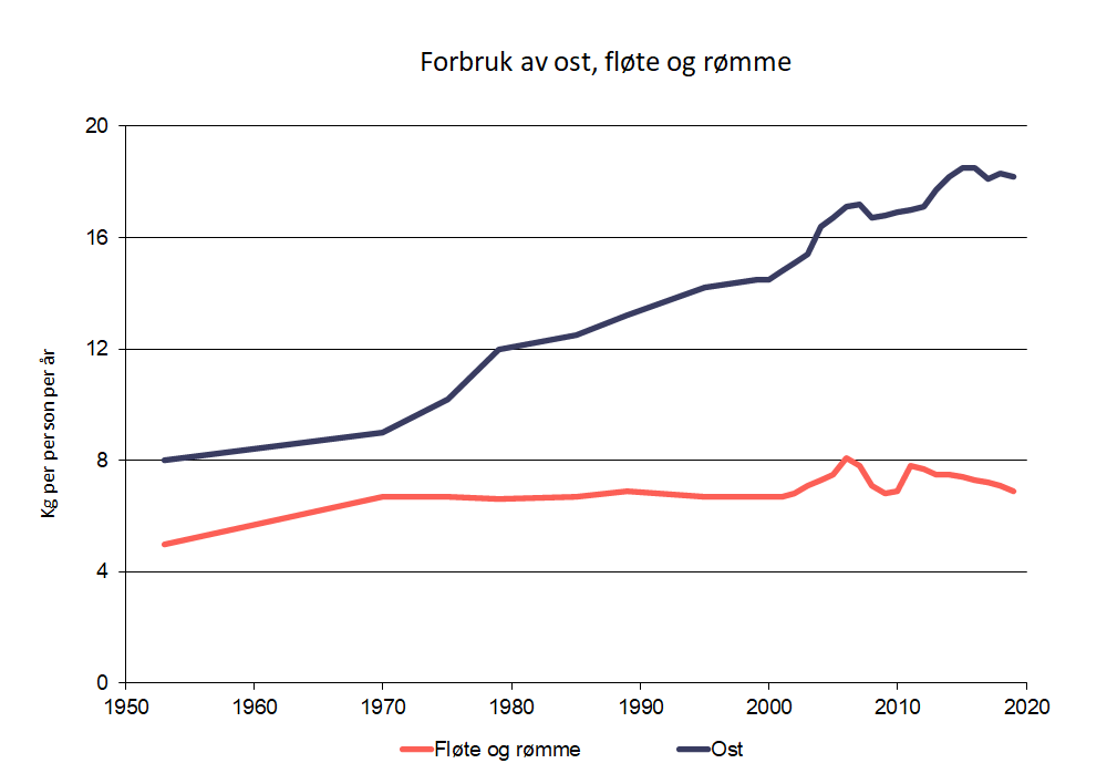 Innholdet av mettet fett i kostholdet er fremdeles høyere enn anbefalt (Helsedirektoratet, 2022). Nasjonal handlingsplan for bedre kosthold har som mål å redusere innholdet av mettet fett i kosten til 12 energiprosent. Siden 2015 har innholdet av mettede fettsyrer i kosten ligget mellom 14 og 15 energiprosent, og utgjorde 14 energiprosent i 2020 og 2021 (Helsedirektoratet, 2022). Kjøtt- og melkeprodukter, margarin og smør er de viktigste kildene til mettet fett. På nasjonalt nivå har det vært en overgang fra fete til magrere melketyper. Forbruket av ost har imidlertid økt betydelig over lang tid, og det har vært en dreining mot mer fete ostetyper. I Intensjonsavtalen om tilrettelegging for et sunnere kosthold, som er en avtale mellom helsemyndighetene og matbransjen, arbeider man blant annet med å redusere innholdet av mettet fett i matvarer (Helsedirektoratet, 2021f).