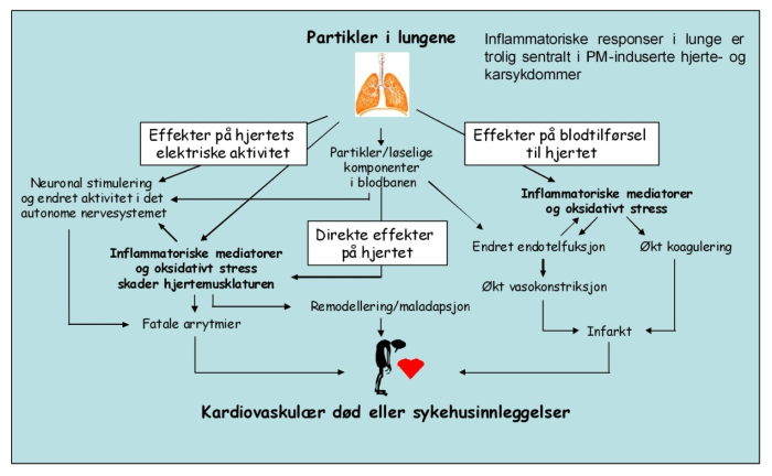 - Utvikling av luftveissykdommer og hjerte- og karsykdommer (bl.a. ved å utløse betennelsesreaksjoner)
