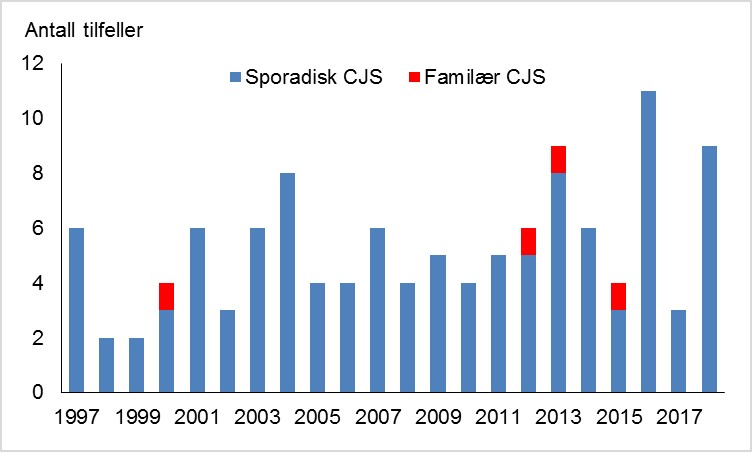 Mistenkte tilfeller av prionsykdommer har vært nominativt meldingspliktig i MSIS siden 1997. Variant CJS er aldri påvist i Norge. Det er påvist noen enkelte tilfeller av familiær CJS, men normalt er tilfeller av CJS diagnostisert i Norge av sporadisk type.