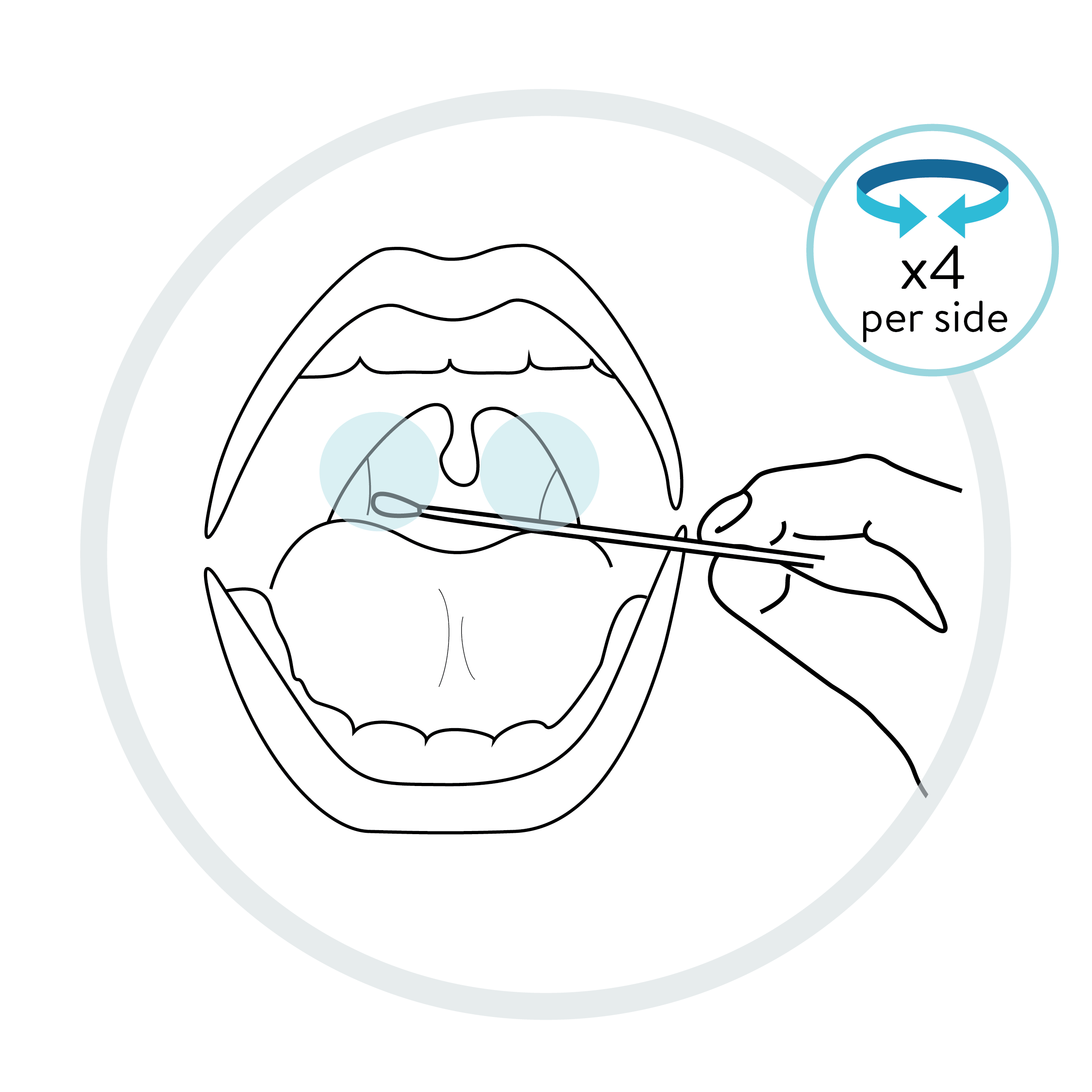 - Stryk penselen litt frem og tilbake over bakre svelgvegg og mandlene.