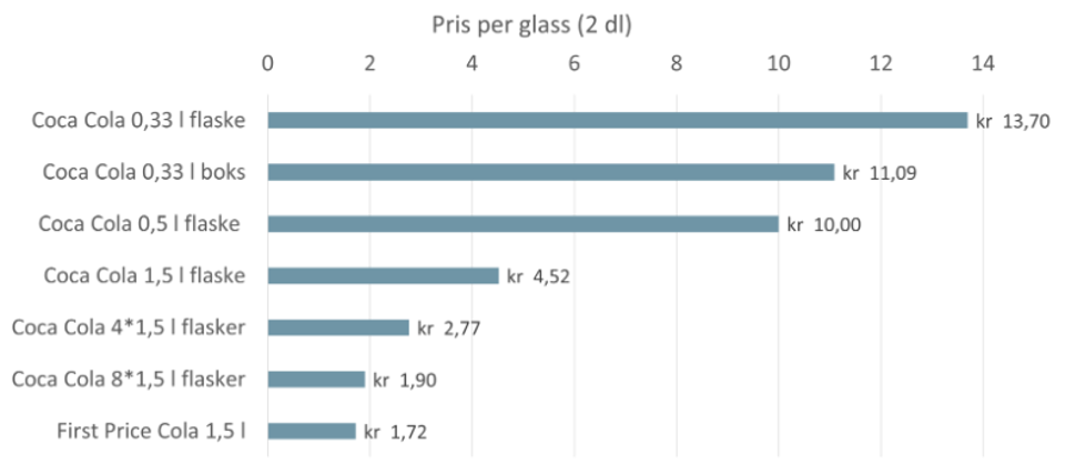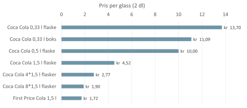 I 2020 var avgiften 4,91 kr/liter på alkoholfrie drikkevarer og 21,22 kr/kg på sjokolade og godteri. Bortfallet av disse avgiftene i Norge har gitt størst prisfall relativt sett på store enheter, og det kan bidra ytterligere til at man kjøper mer enn man trenger.