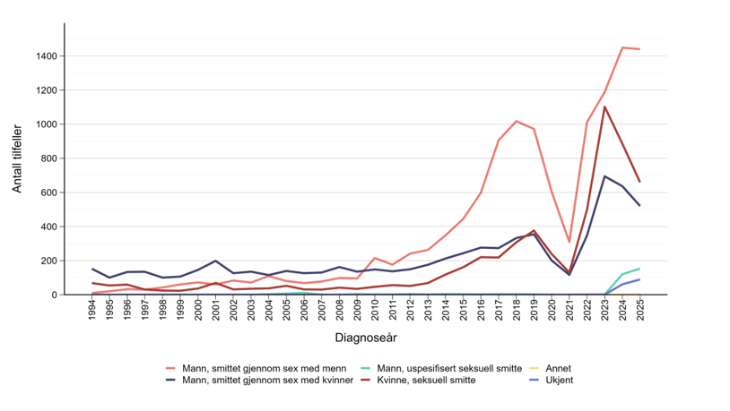 Disse dataene er hentet fra Blod- og seksuelt overførbare infeksjoner i Norge. Årsrapport 2025.