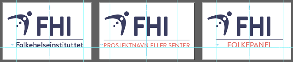 - Bruk fortrinnsvis kortversjon av logoen. Unntak: Versjonen med hele navnet skal brukes når det ikke ellers kommer frem at det er Folkehelseinstituttet som er avsender.