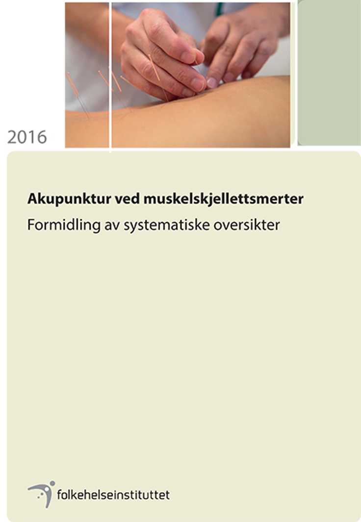 Kunnskapssenteret i Folkehelseinstituttet fikk i oppdrag å undersøke effekt av akupunktur sammenliknet med konservativ behandling for muskelskjelettsmerter.