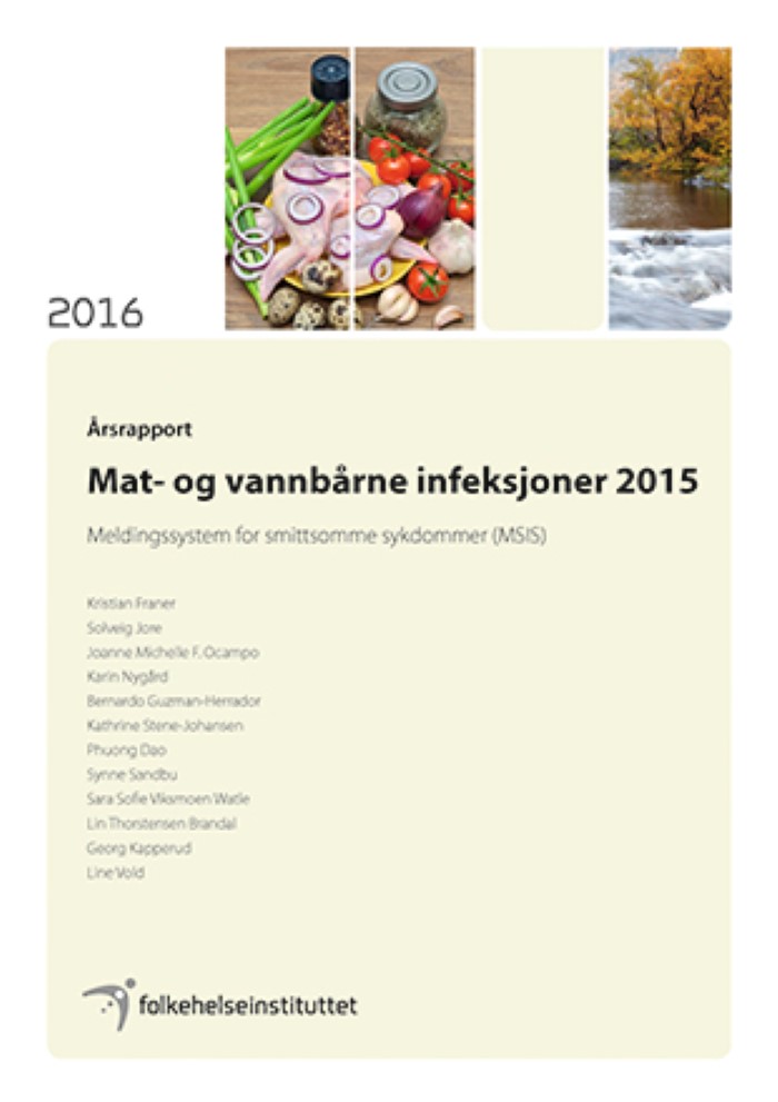 Rapporten beskriver forekomsten av de vanligste mat- og vannbårne infeksjoner rapportert til Folkehelseinstituttet i 2015. Det totale antall meldte tilfeller av mat- og vannbårne infeksjoner i 2015 viste en nedgang i forhold til året før.