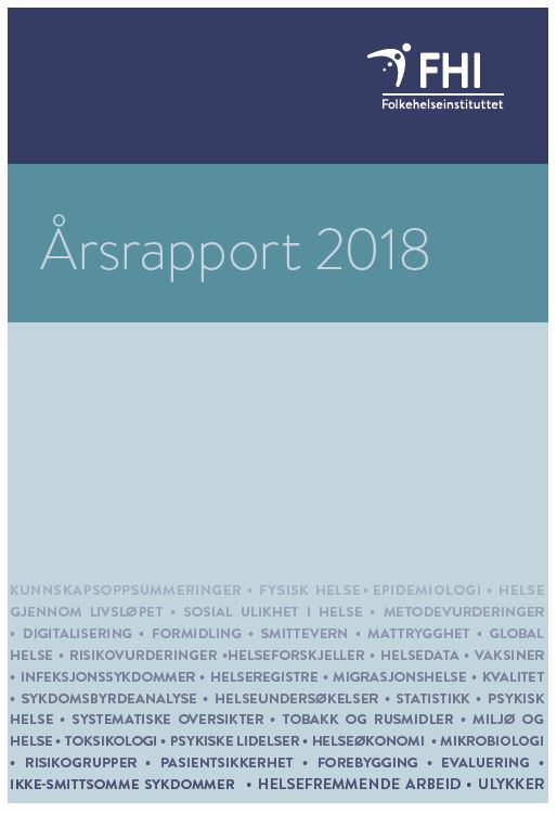Her kan du lese om Folkehelseinstituttet, aktiviteter og økonomi i 2018. Årsrapporten er en del av styringsdialogen mellom Folkehelseinstituttet og Helse- og omsorgsdepartementet og leveres i henhold til krav for offentlige virksomheter.