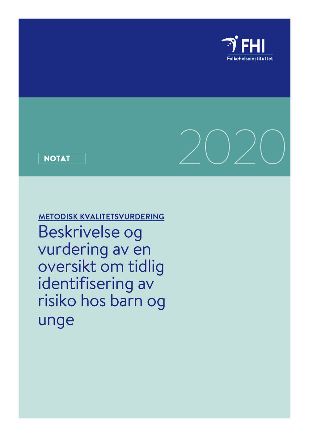 Fagmiljø for velferdstjenesteforskning i område for helsetjenester, Folkehelseinstituttet (FHI), fikk i september 2020 i oppdrag av Barne-, ungdoms- og familiedirektoratet (Bufdir) å vurdere metodisk kvalitet på en publikasjon utgitt av Helsedirektoratet: Kunnskapsgrunnlag – Metoder for tidlig identifisering av risiko hos barn og unge (Møller 2018).