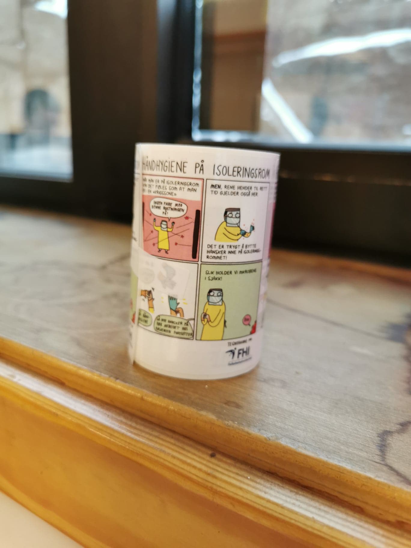 Rull med 50 klistremerkeetiketter for å klistre på f.eks. hånddesinfeksjonsflasker.