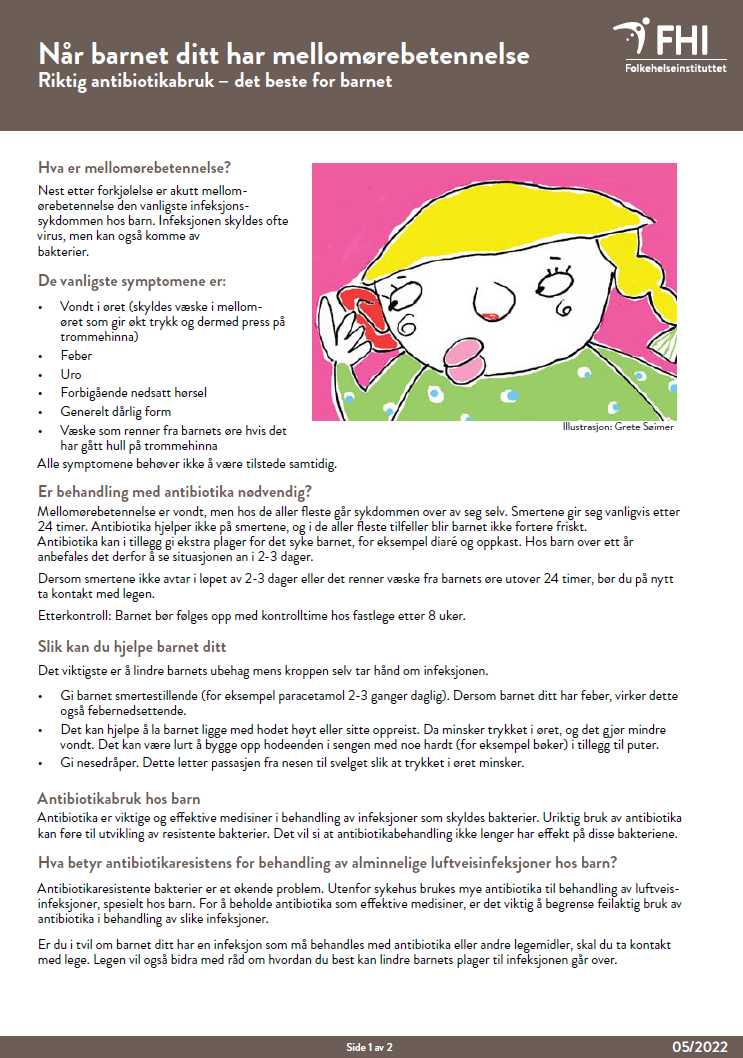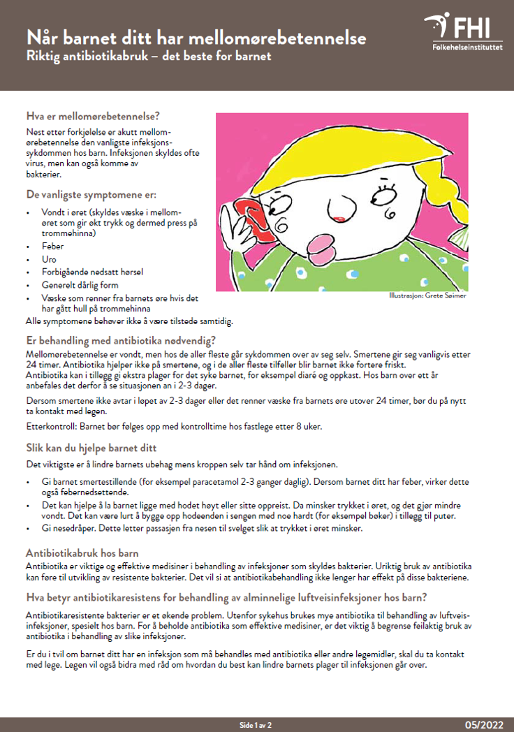 ”Alle barn får ørebetennelse” er en informasjonsbrosjyre til foreldre om luftveisinfeksjoner hos barn og råd om hva man kan gjøre for å lindre barnets plager.