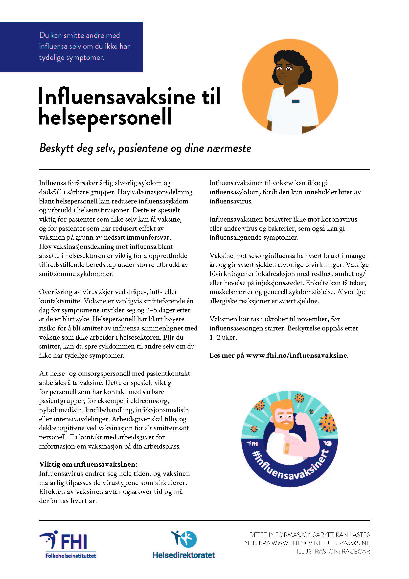 Informasjonsskriv om influensa og influensavaksinen rettet mot helsepersonell.