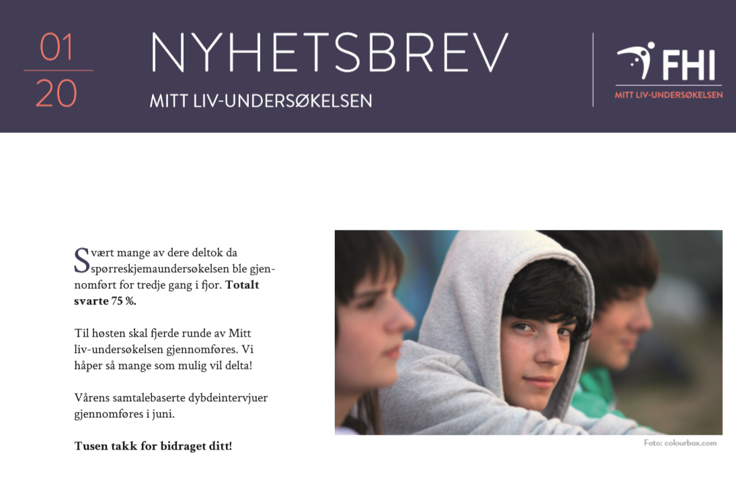 Nyhetsbrev (norsk og engelsk) til deltakere i MITT LIV-undersøkelsen.