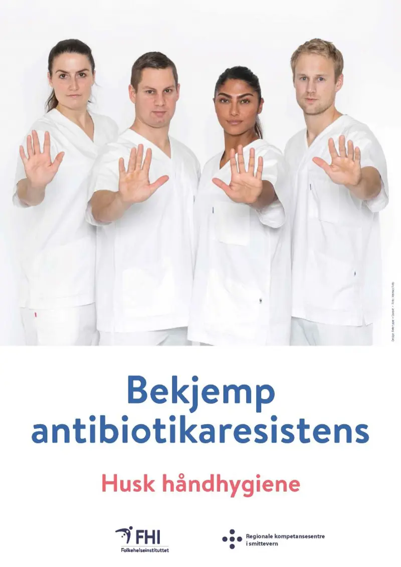"Bekjemp antibiotikaresistens - husk håndhygiene" er en plakat laget i anledning av markeringen håndhygienedagen 2018.