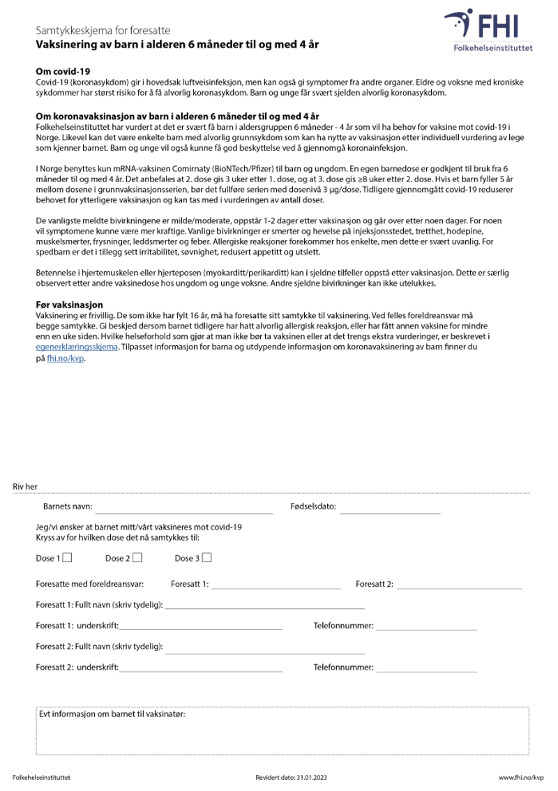 Samtykkeskjema - vaksinasjon av barn i alderen 6 måneder til og med 4 år