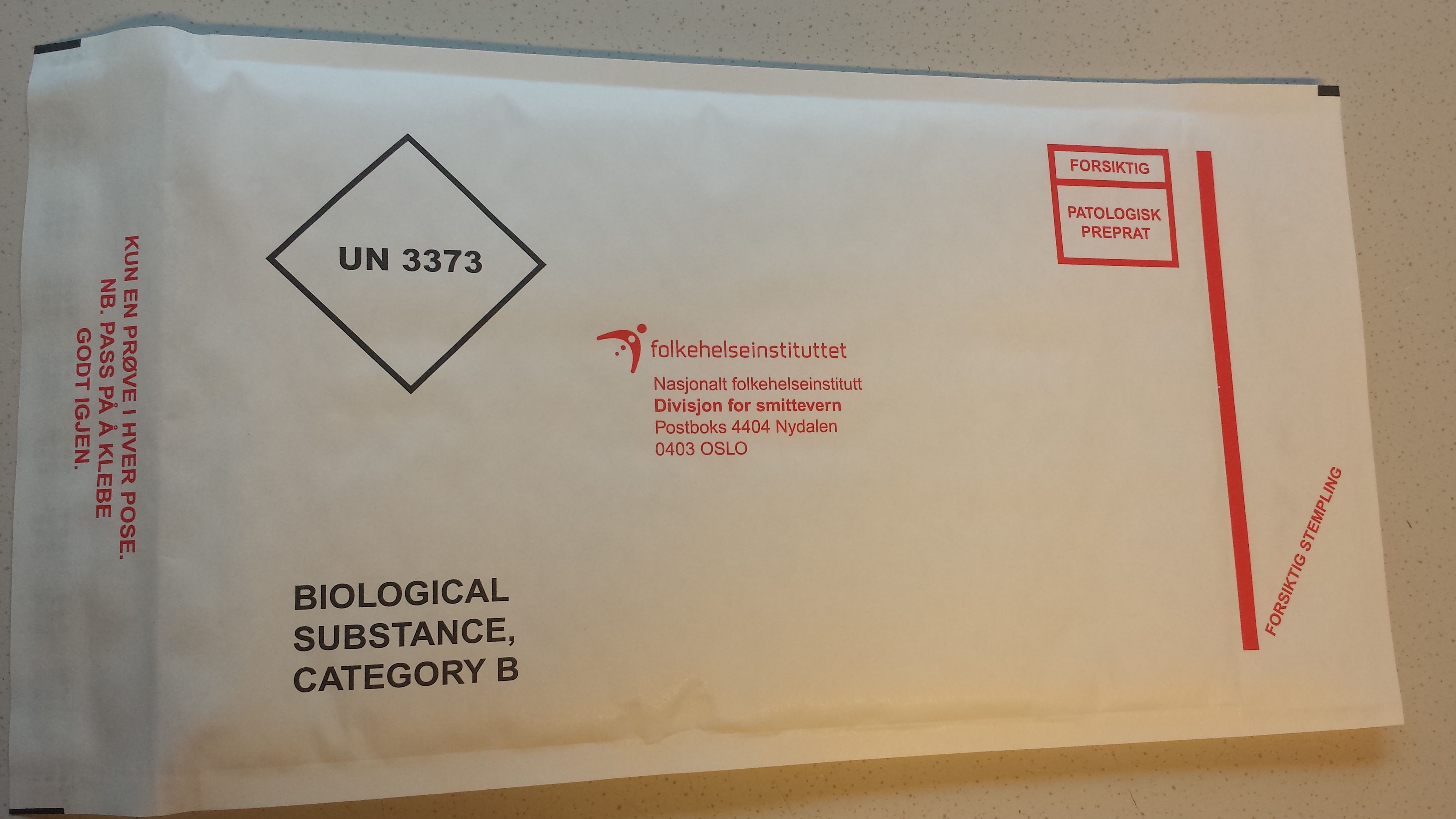 For å lette arbeidet med innsending av prøver til Folkehelseinstituttet, bør denne universale prøvekonvolutten benyttes for alle prøver. Du kan sende inn flere prøver i samme konvolutt.