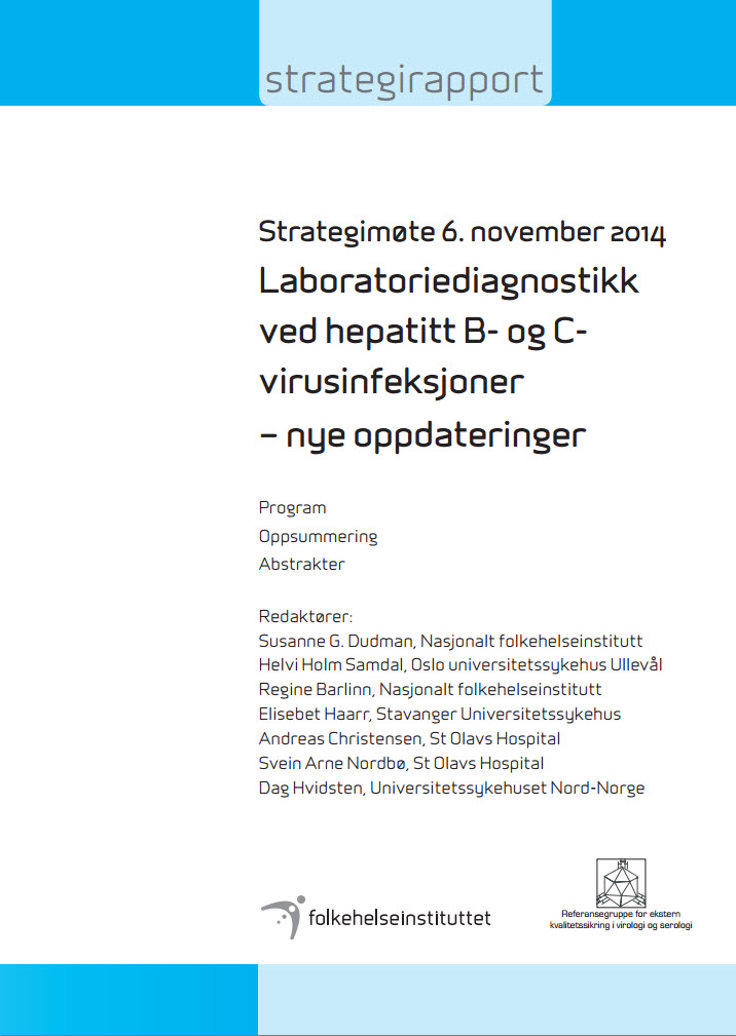 I regi av «Referansegruppe for ekstern kvalitetssikring i virologi og serologi» ble det holdt strategimøte 6. november 2014 om laboratoriediagnostikk ved HBV- og HCV-infeksjoner. Årets rapport er en videreføring og oppdatering av laboratoriediagnostikken og må sees i sammenheng med tidligere års strategirapporter.